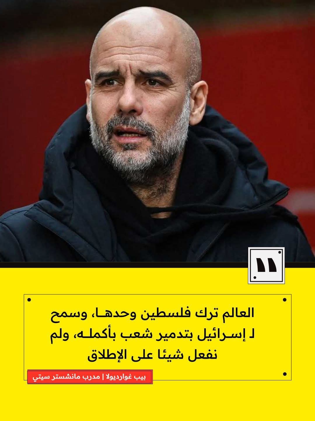 مدرب مانشستر سيتي بيب غوارديولا: العالم ترك فلسطين وحيدة لـ إسرائيل