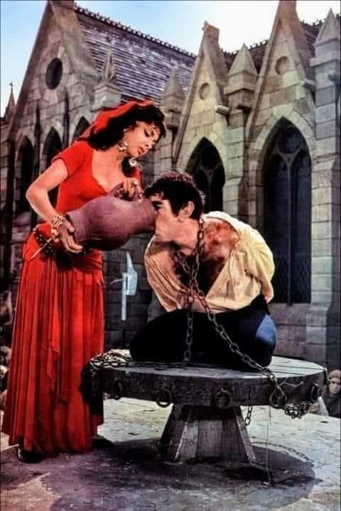 وتخلى عنه الجميع ولم يعطف عليه احد.بما فيهم القس فرولو وتركوه يعاني اللام الجلد والعطش فذهبت اليه ازميرالدا بالماء لتروي عطشه