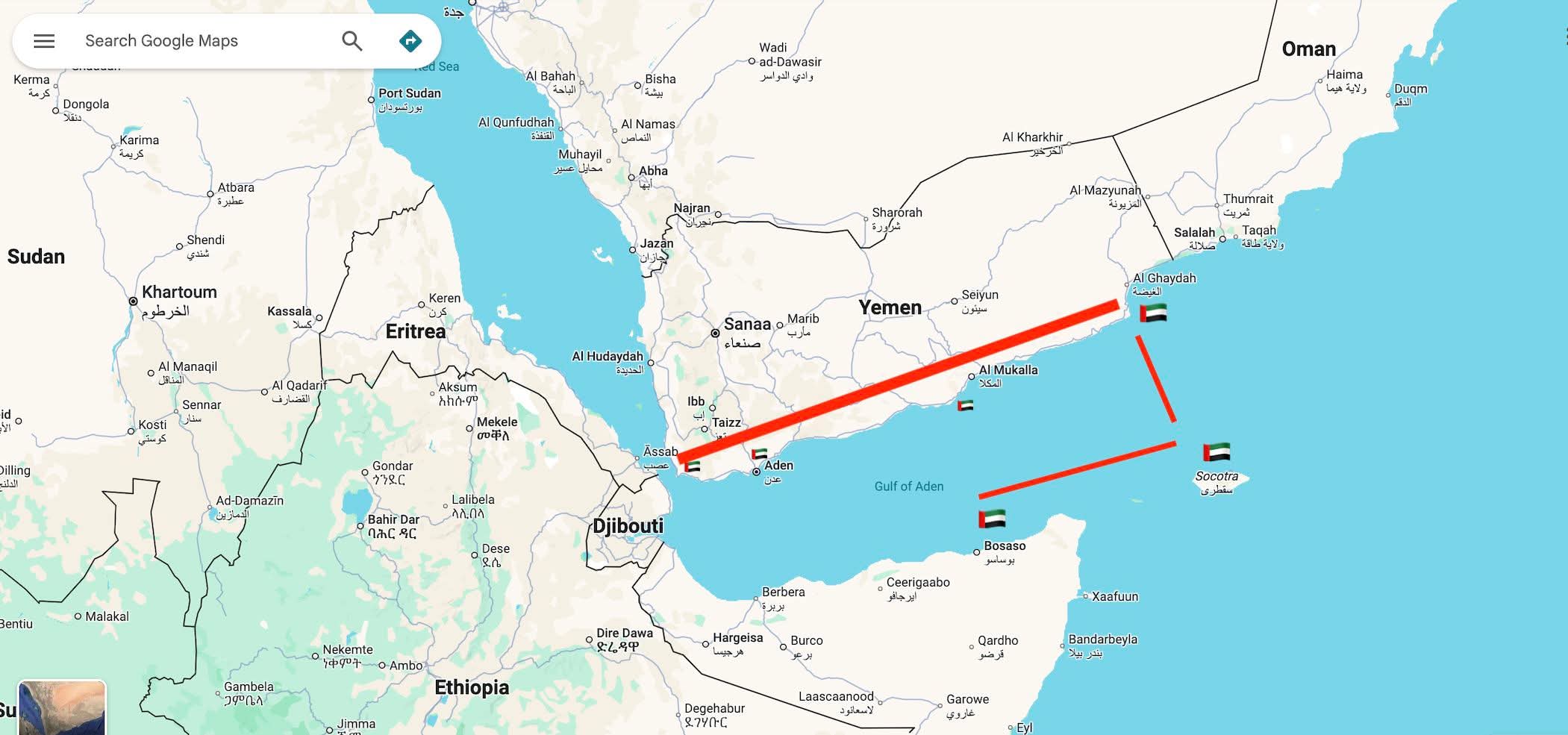 أما الإمارات فإنها الآن تُسيطر على المناطق النفطية الغنية بجنوب اليمن وموانيه والأهم السيطرة مضيق باب المندب، أحد أهم مسارات التجارة العالمية عبر قوات الزبيدي في اليمن، وقواتها في جزيرة سقطرى ومن الجهة الأخرى عبر الميلشيا الانفصالية التي تدعمها في الصومال وقاعدتها العسكرية في بوساسو التي نصبت فيها سابقاً رادار اسرائيلي لرصد عمليات إطلاق الصواريخ الحوثية تجاه فلسطين المحتلة، ومحاولة السيطرة تماما على البحر الأحمر عبر ميليشيا حمدتي في السودان واستثماراتها في مصر.
