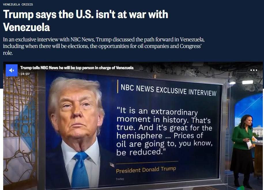 ونفى الرئيس الأمريكي في المقابلة أيضًا أن تكون الولايات المتحدة في حالة حرب مع فنزويلا.