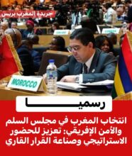 في تطور دبلوماسي لافت، انتُخب المغرب عضواً في مجلس السلم والأمن التابع للاتحاد الإفريقي، في خطوة تعكس تنامي حضوره داخل…